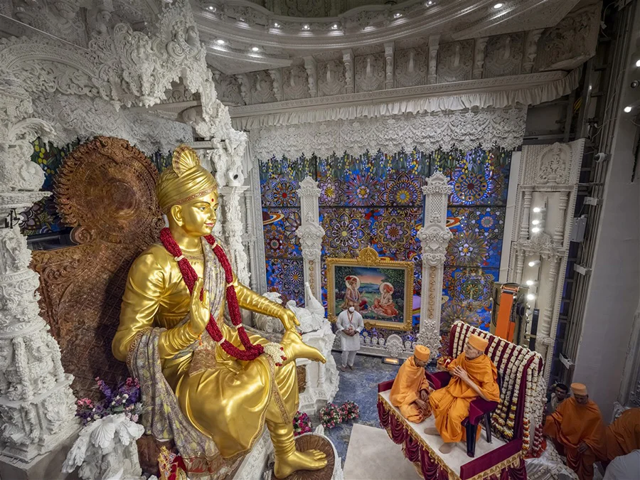 악샤르담 사원의 조각상들은 "돌에 담긴 힌두 문명의 역사"라고 할 수 있습니다. 본당에 모셔진 19세기 힌두교의 영적 지도자 바그완 스와미나라얀의 거대한 조각상부터 공원 입구에 있는 14미터 높이의 닐칸트 바르니 청동상까지, 각 조각상은 종교적 이야기와 문화적 상징을 담고 있습니다. 예를 들어, 닐칸트 바르니 조각상은 발바닥을 위로 향한 채 한 발로 요가 자세를 취하고 있는데, 이는 1792년부터 1799년까지 7년간 지속된 성인의 8,000마일(약 1만 3,000km)에 달하는 금욕 여정을 재현한 것입니다. 조각상의 역동적인 디테일과 종교적 의미는 구리의 질감을 통해 영원히 고스란히 담겨 있습니다.
