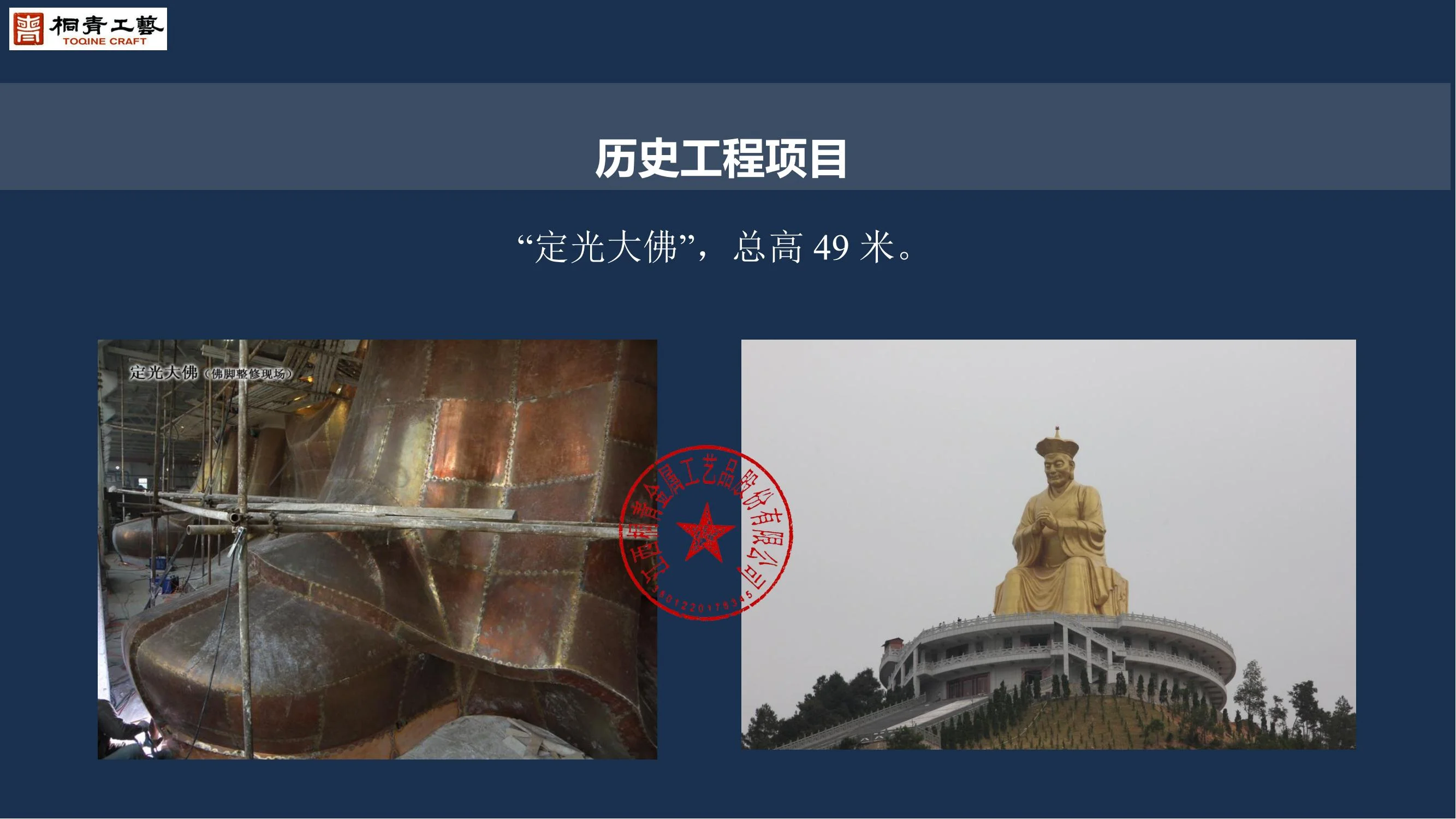 인도 국민의 "통일"을 상징하는 대형 인물 조각상 "사다 바라바이 파텔"의 청동상은 2018년 10월 31일, 장시 통칭 금속공예 주식회사가 2년 6개월 동안 제작에 착수하여 성공적으로 설치되었습니다. 총 높이 182미터, 총 중량 2,290톤에 달하는 이 청동상은 세계에서 가장 높고 큰 옥외 청동상입니다.